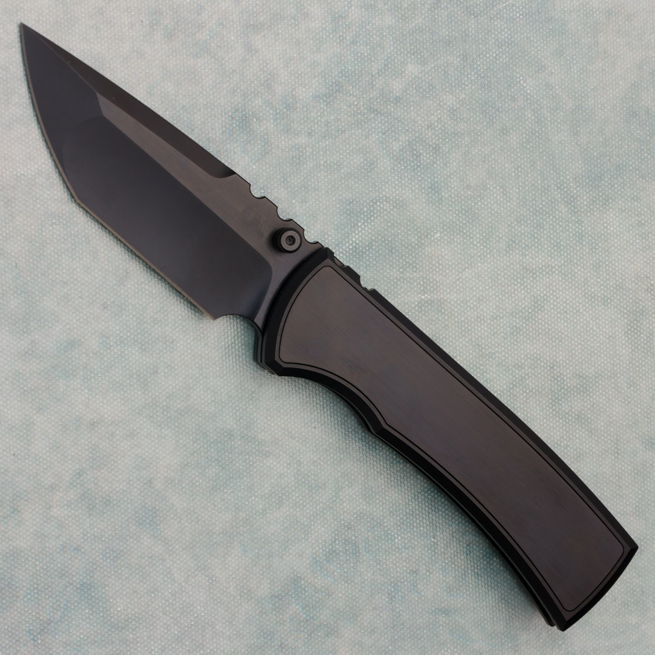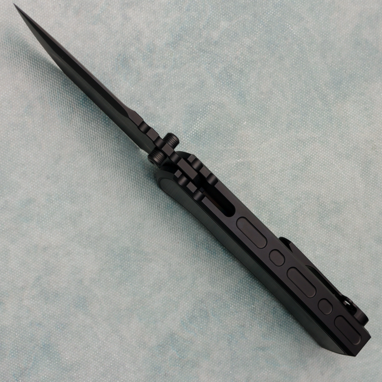 This model features stonewash with satin flats black PVD titanium handles with a swappable magnetic satin PVD titanium inlay, the blade is M390 with a stonewash with satin flats black PVD finish. Brand new in box.