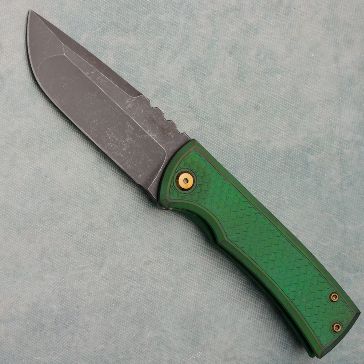 Chaves Knives Redencion 229 Kickstop Flipper S/E Green Dragon Scale Titanium Handle Acidwash Blade
