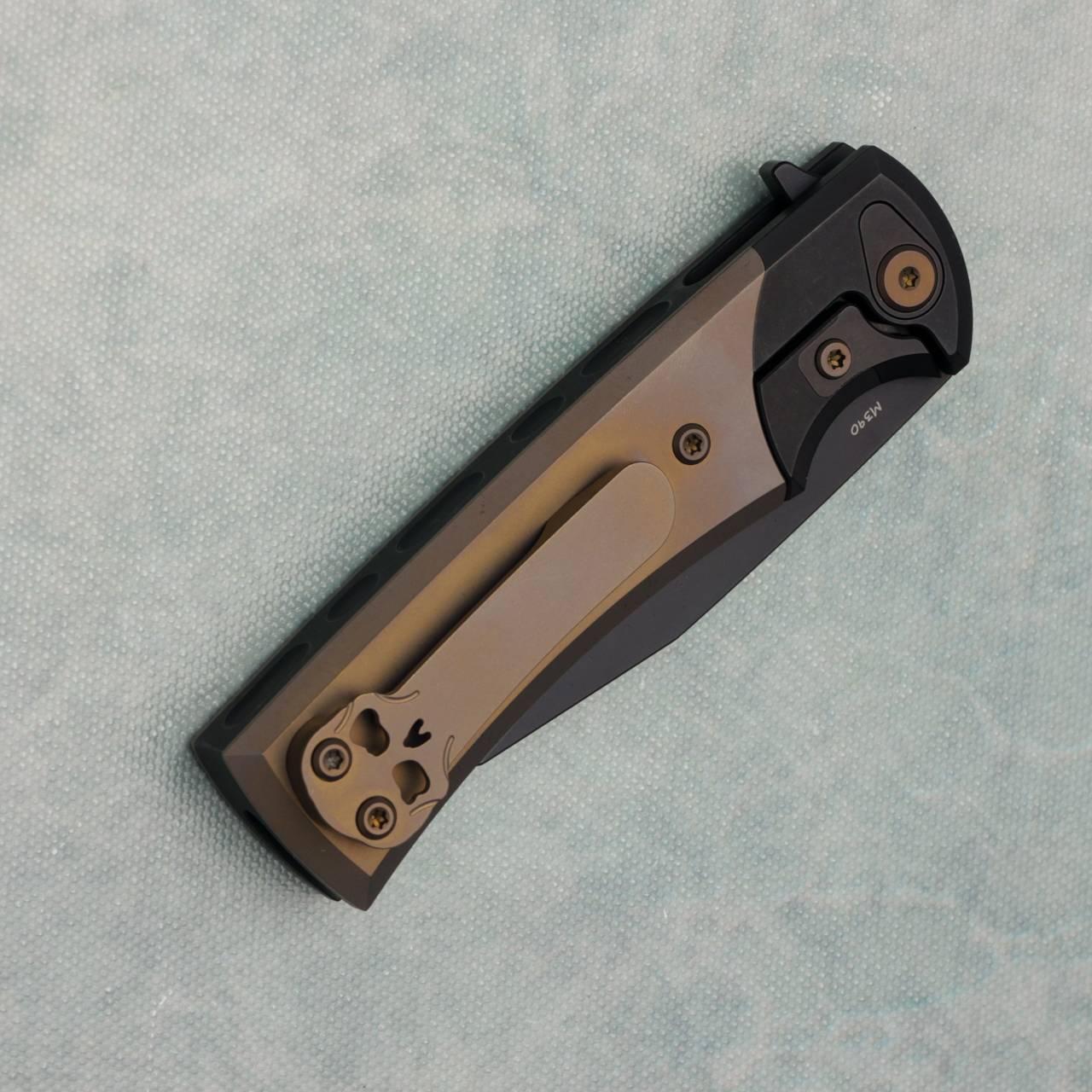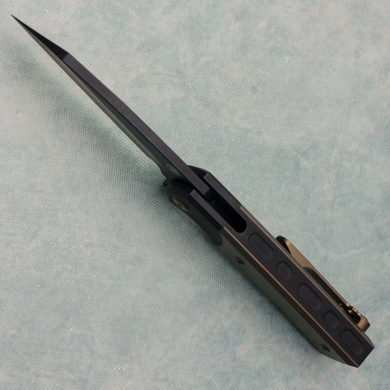 The new Chaves Sangre Street integrals are great! Black PVD titanium handles with bronze titanium inlays, and a black PVD M390 blade round out this knife. Brand new in box.