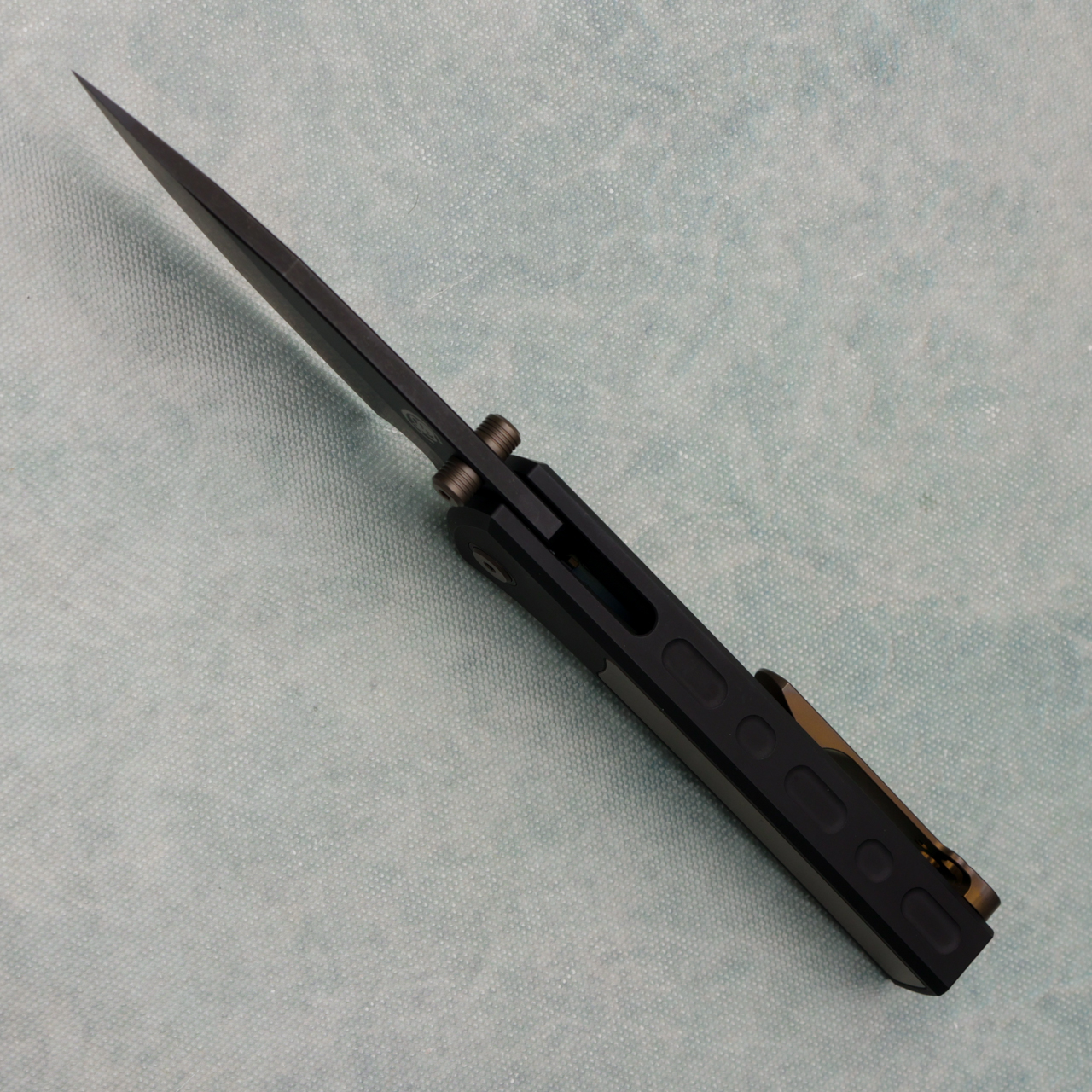 Chaves Knives Scapegoat Street Framelock S/E Black PVD Titanium Handle w/ Bronze Titanium Inlays Black PVD M390 Blade The Suit