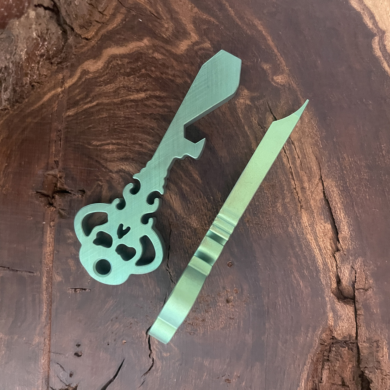 These pry bars are HOT! Check out the fully anodized titanium signature Chaves Key pry bar in green! Perfect tool for your every day carry.