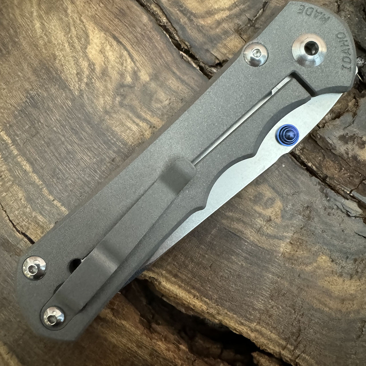 This model features titanium handles, a CPM-MagnaCut insingo blade. Double Blue lugs. Like new in box.