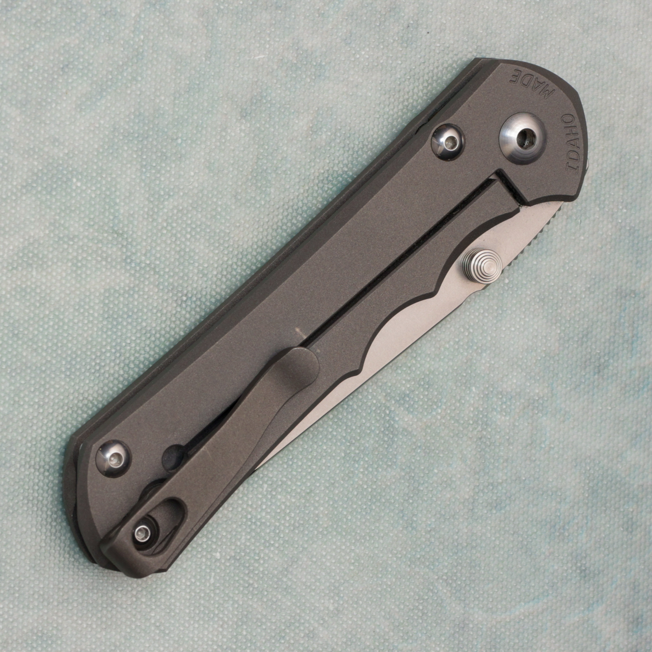 This model features titanium handles, a CPM-S45VN insingo blade. Thumbstuds have been swapped out from factory ones to some threaded ti connector ones and give a great feel. Clip has been swapped to Lynch northwest milled deep carry clip. Just has one mark where old clip used to sit and one very light mark on clip. Comes in box.