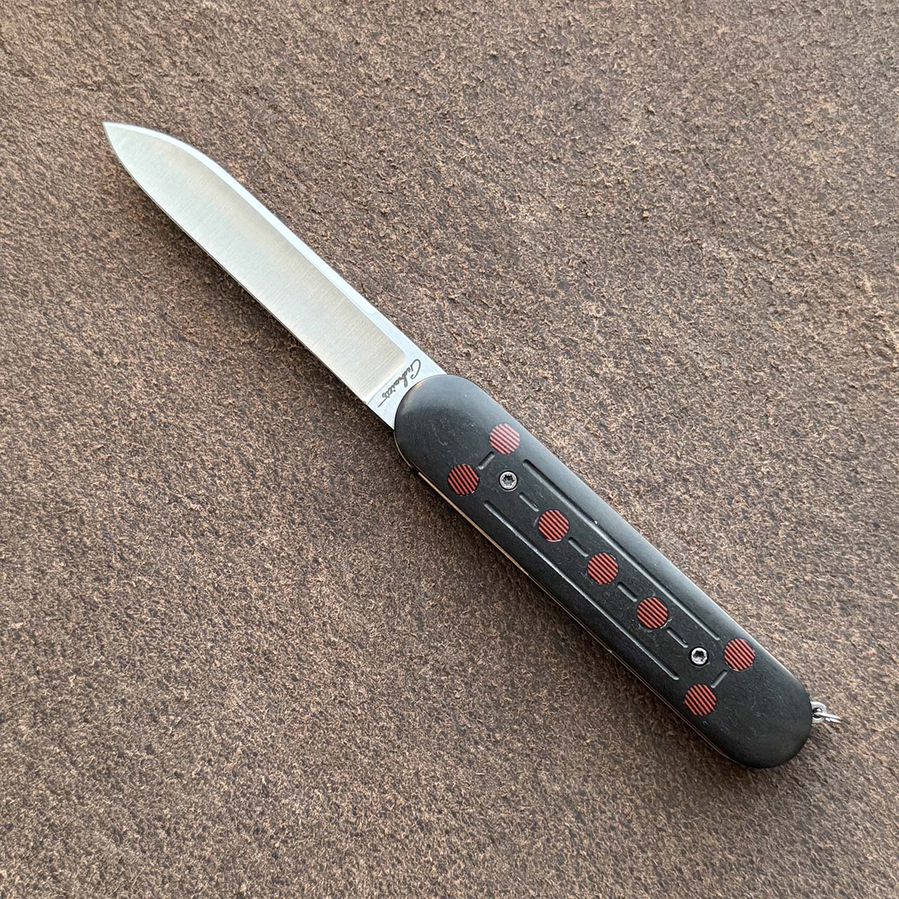 Gedraitis Custom Switch Army Switch Blade Black Linen Micarta Scales w/ Red G10 Inlays Titanium Liners Satin Nitro-V Blade