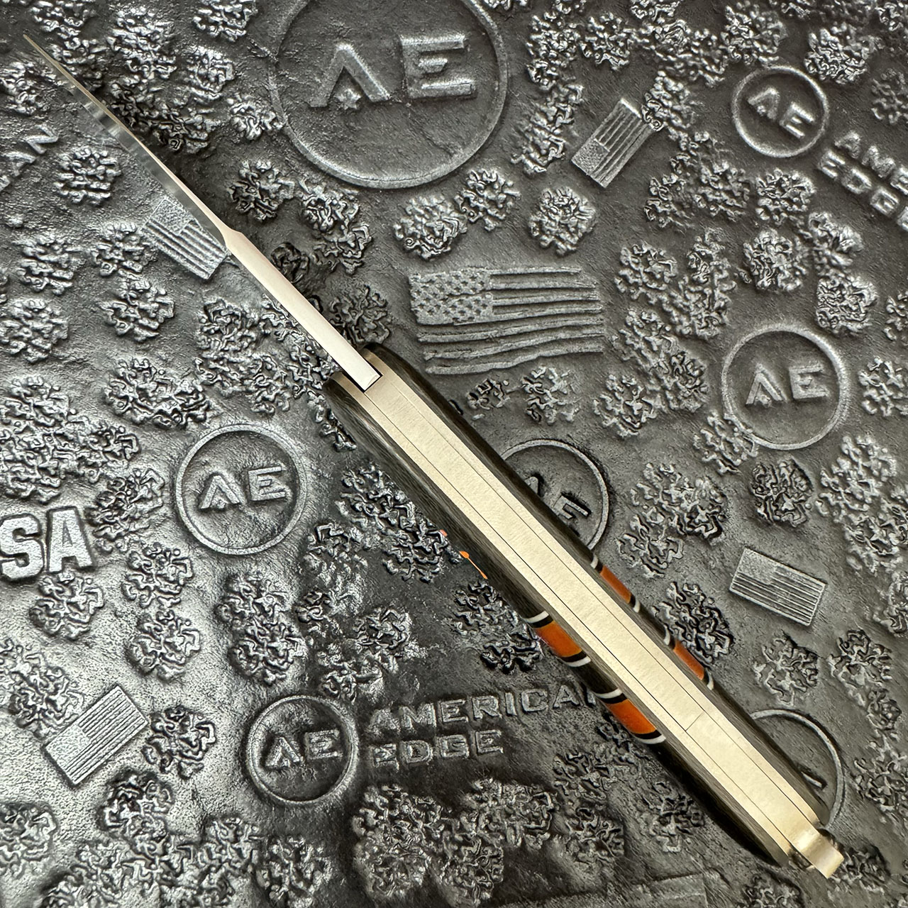 Chuck Gedraitis Custom Switch Army Switch Blade Carbon Fiber Scales w/ Vintage Orange Paper Micarta Inlays Satin CPM154 Blade