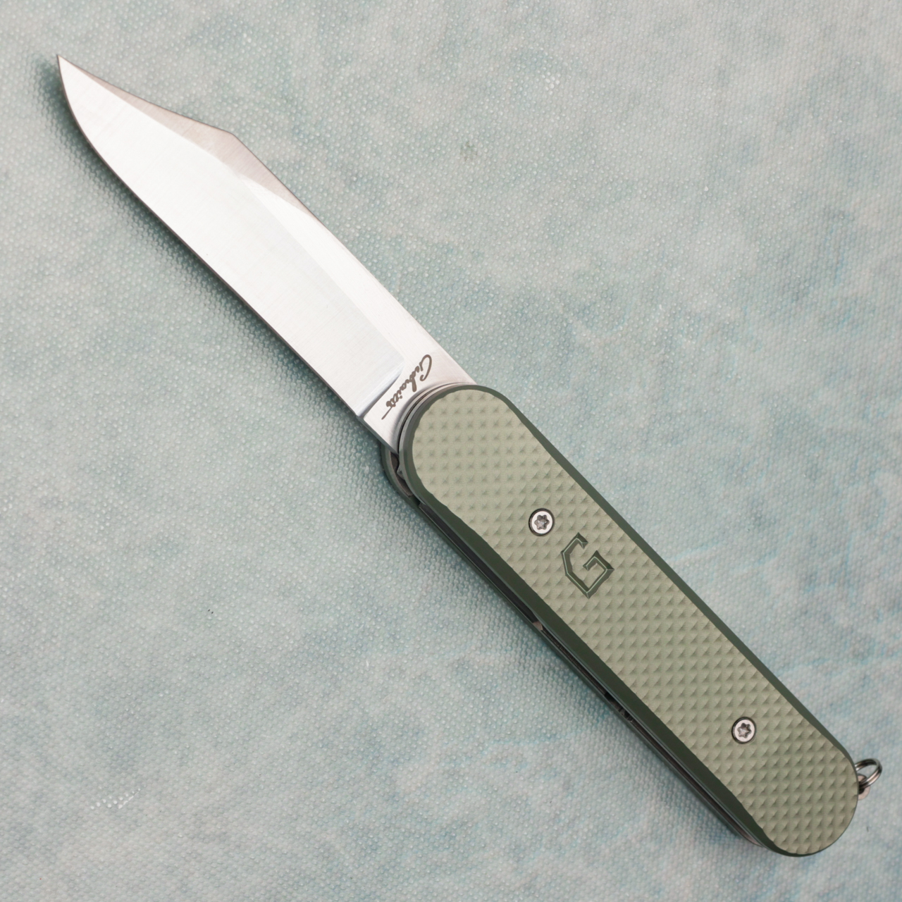 Chuck Gedraitis Switch Army Switch Blade Sage Green Aluminum Scales w/ Titanium Liners Satin Nitro-V Clip Pint Blade