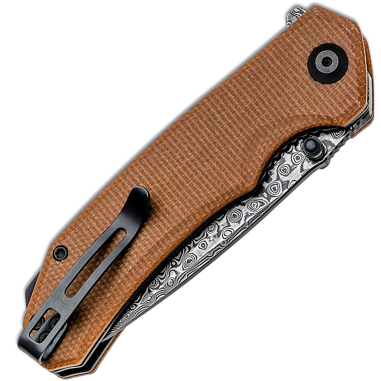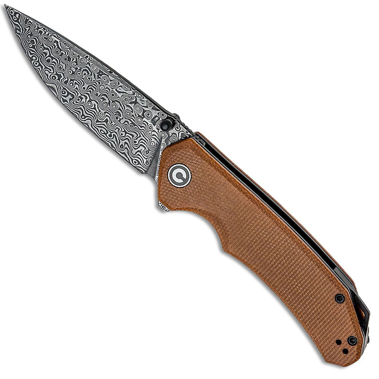 Civivi Brazen Liner Lock Brown Micarta Handles Damascus Drop Point Blade C2102DS-1