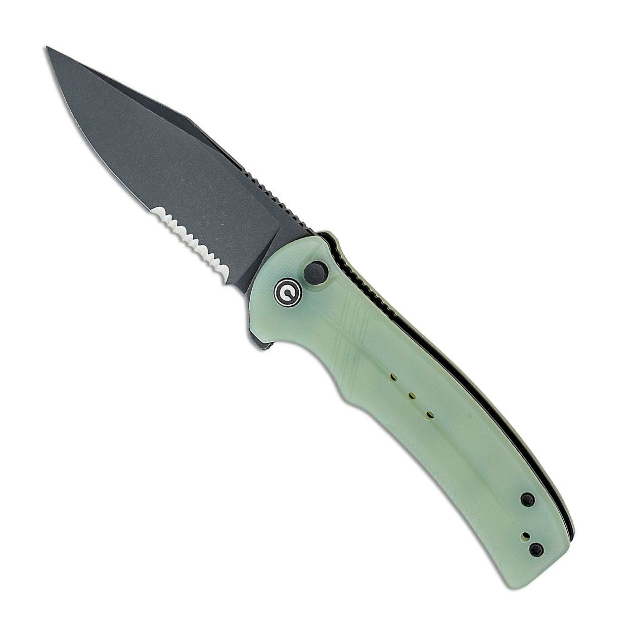 Civivi Cogent Button Lock Natural Jade G10 Handle Blackwashed Combo Blade C20038E-3