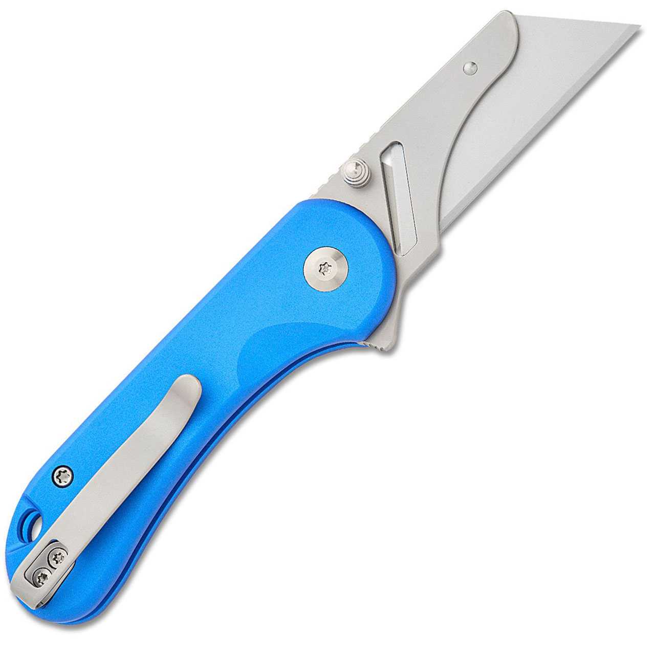 One of the best budget knives of all time, Civivi has now taken the elementum platform to a utility blade! This civivi elementum is a button lock with beautiful blue aluminum handles and a replaceable utility blade. Flipper and thumbstud opening and deep carry reversible pocket clip. Comes with 3 extra utility blades to keep you going for all the edc tasks you can do! Brand new in box.