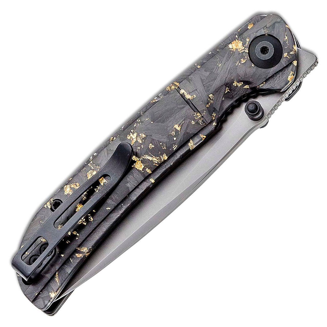 Civivi Imperium Liner Lock Gold Shred Carbon Fiber Handle Stonewashed Blade C2106A