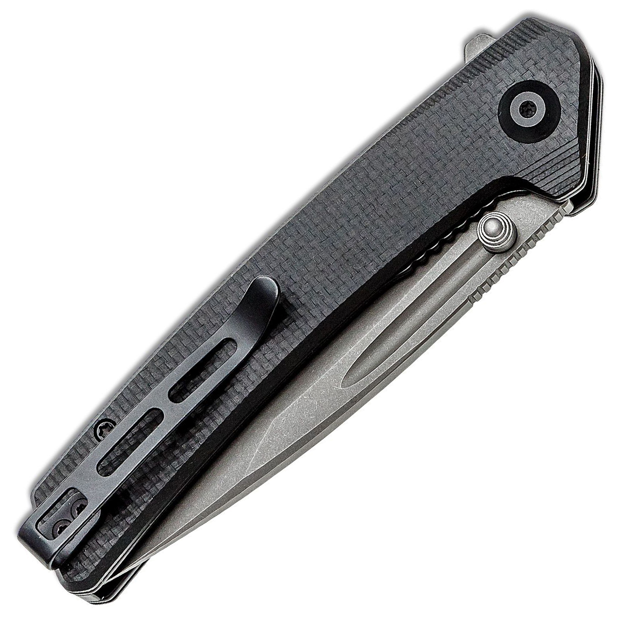 This model of the CIVIVI Keen Nadder comes with coarse black g10 handles and a compound grind tanto gray stonewashed Bohler N690 Blade. New in box.