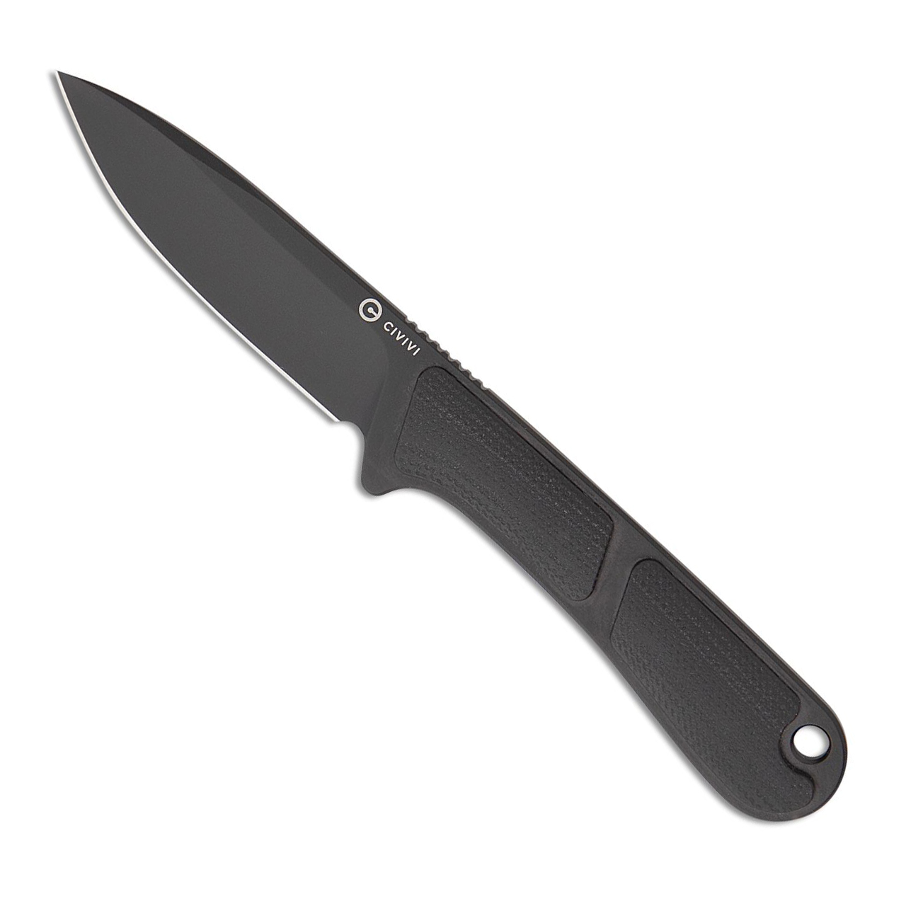 One of the best budget knives of all time Now in a mini fixed blade neck knife. This civivi mini elementum is a fixed blade with black G10 handles and a black nitro-V blade. Brand new in box.