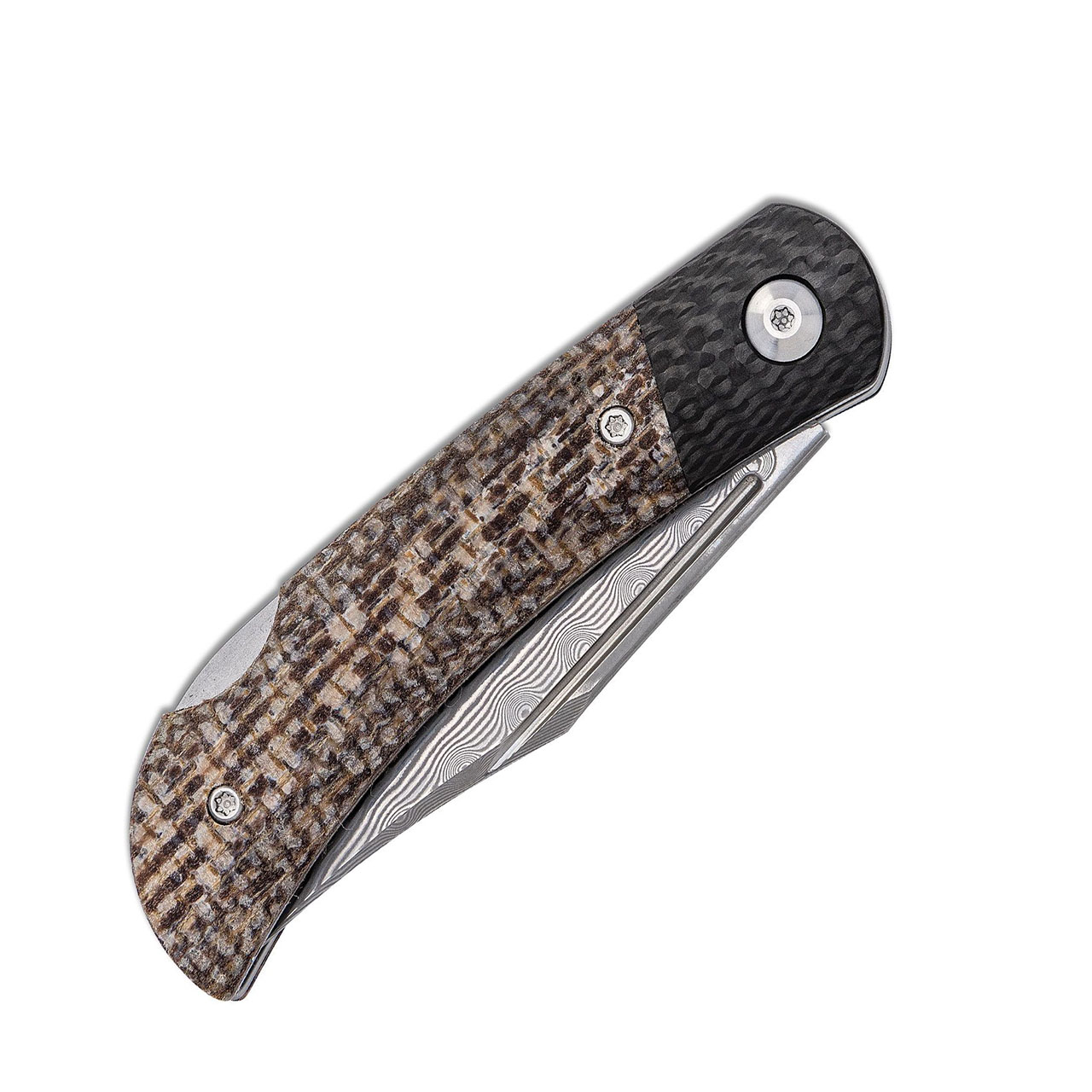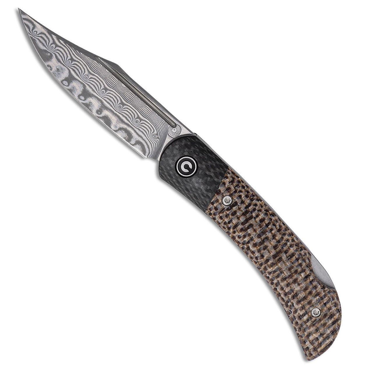 Civivi Rustic Gent Back Lock Brown Matrix Micarta Handle With Carbon Fiber Bolster Damascus Blade C914DS-2