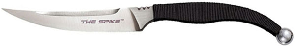 The Spike, designed by Barry Dawson, is a weapon pared down to its bare essentials. Its thick, narrow blade is distal tapered and flat ground to a zero edge. This creates a unique cross section that facilitates both penetration of the tip and cutting power previously unknown in such a thick, narrow blade. The integral handle of the spike compliments its minimalist theme. It has been carefully shaped out of solid steel, wrapped with cord and had all of its sharp edges melted so they don't irritate the hand. Each spike comes with a sturdy Secure-Ex sheath and steel bead lanyard so you can wear it around your neck or lash it to a D ring or other gear. Brand new in box.