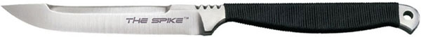 The Spike, designed by Barry Dawson, is a weapon pared down to its bare essentials. Its thick, narrow blade is distal tapered and flat ground to a zero edge. This creates a unique cross section that facilitates both penetration of the tip and cutting power previously unknown in such a thick, narrow blade. The integral handle of the spike compliments its minimalist theme. It has been carefully shaped out of solid steel, wrapped with cord and had all of its sharp edges melted so they don't irritate the hand. Each spike comes with a sturdy Secure-Ex sheath and steel bead lanyard so you can wear it around your neck or lash it to a D ring or other gear. Brand new in box.