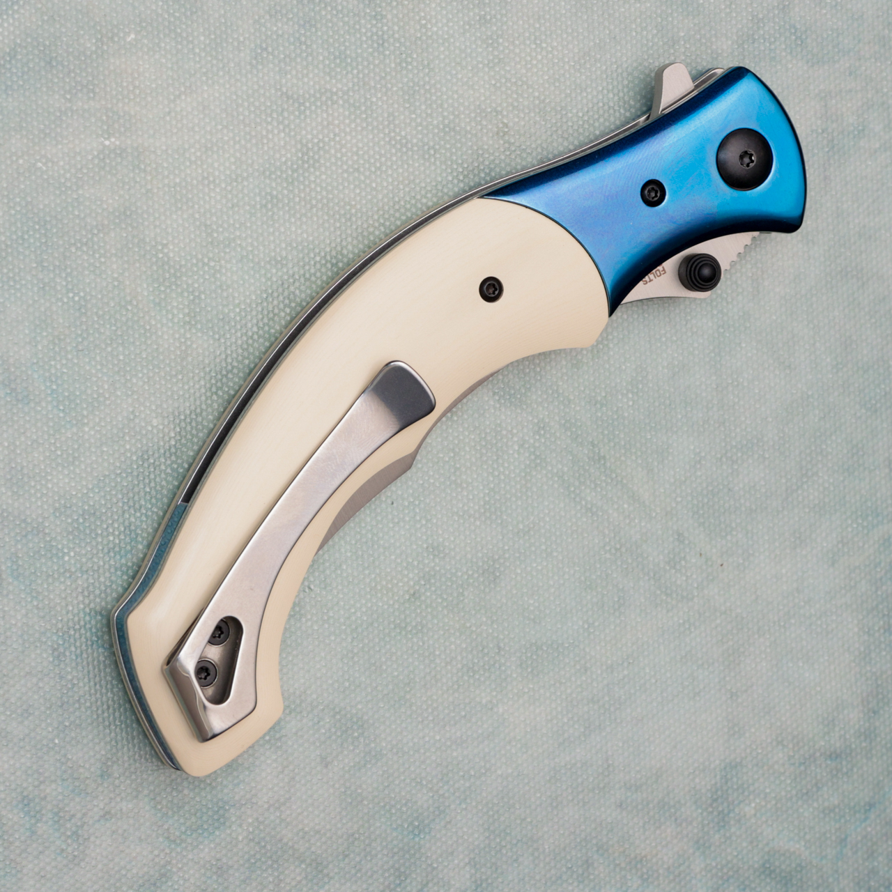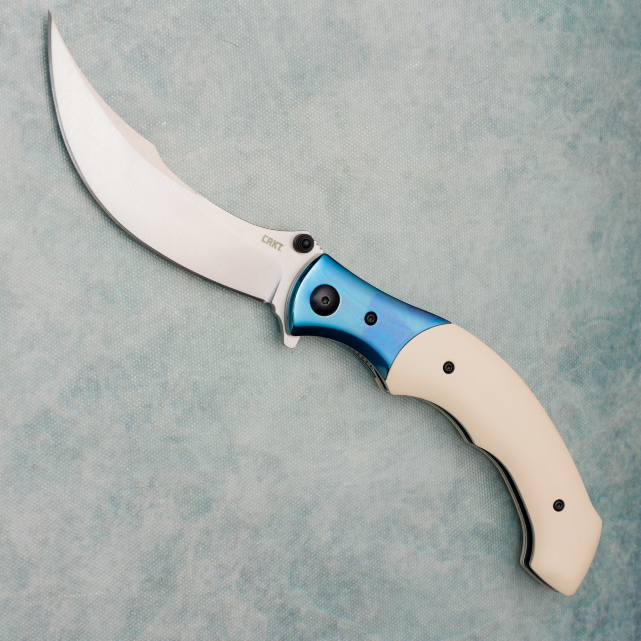Columbia River Knife And Tool CRKT Ritual Liner Lock Assisted Flipper Ivory Micarta Handles w/ Blue Steel Liners Satin Blade 7471