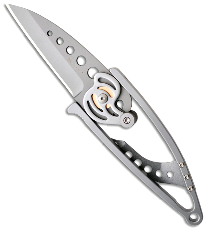 The 5102 Snap Lock knife features a stainless steel wishbone handle with a bead blast finish. Bead blast finished AUS-4 stainless steel wharncliffe blade with a hollow grind and plain cutting edge. Two pocket clips are included for right or left handed carry as well as a lanyard hole. Brand new in box.