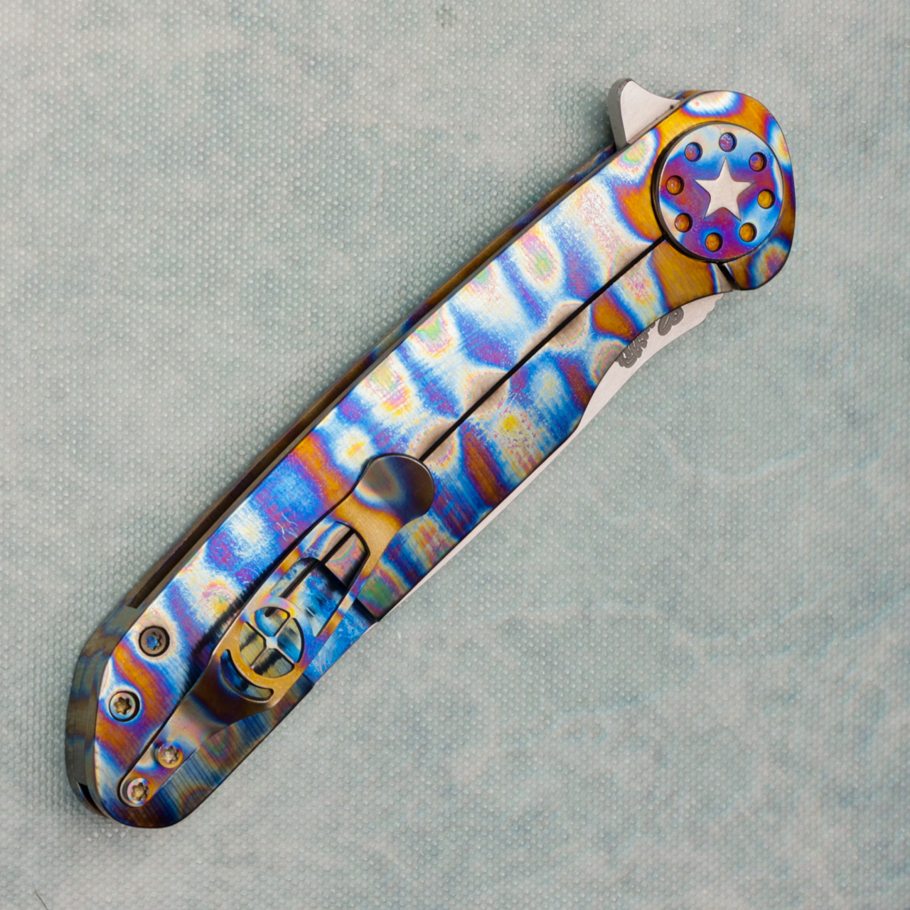 Curtiss Knives Warhawk Milled and Torched Titanium Stonewash M390 Blade Prototype (Pre-Owned)