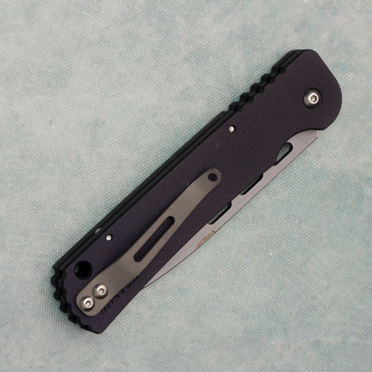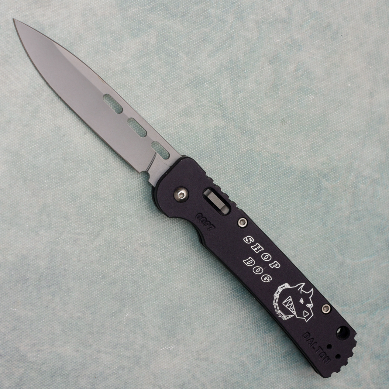 Dalton 07 Militia side opener auto, has black shop dog aluminum scales and a bead blast blade. back of blade has a mark, otherwise in great shape from a collector.