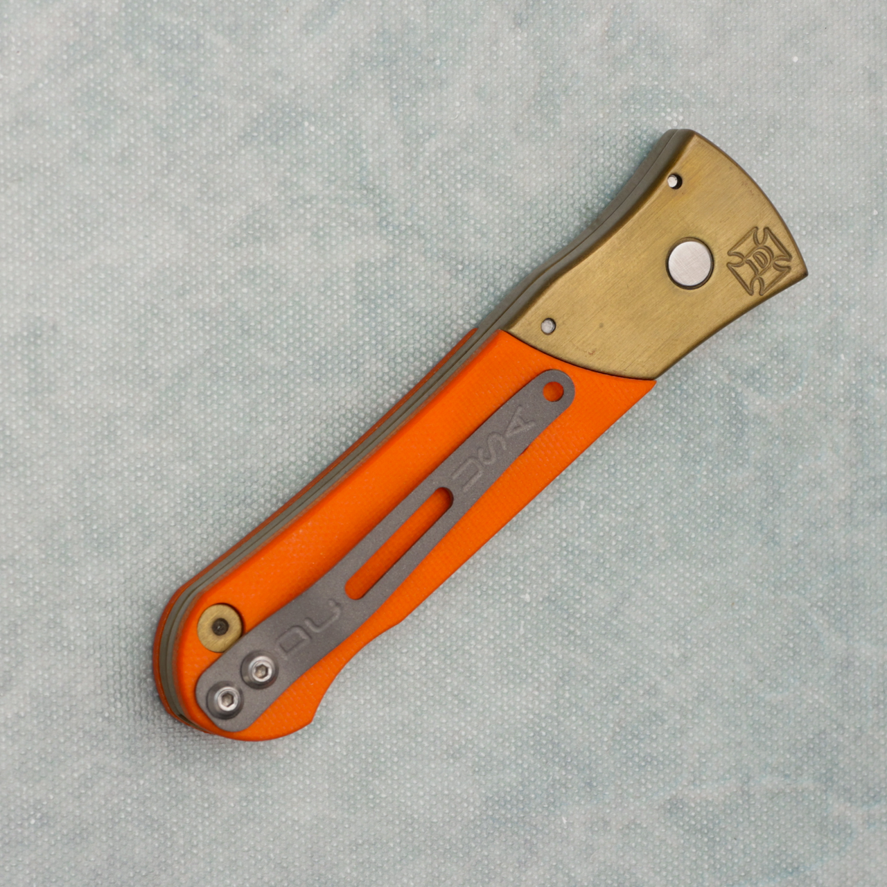 Dalton Moe Auto Brass Handle w/ Orange G10 Inlays Bead Blast Blade