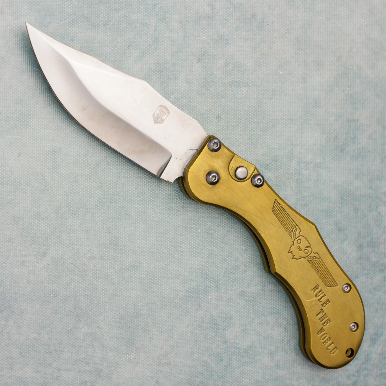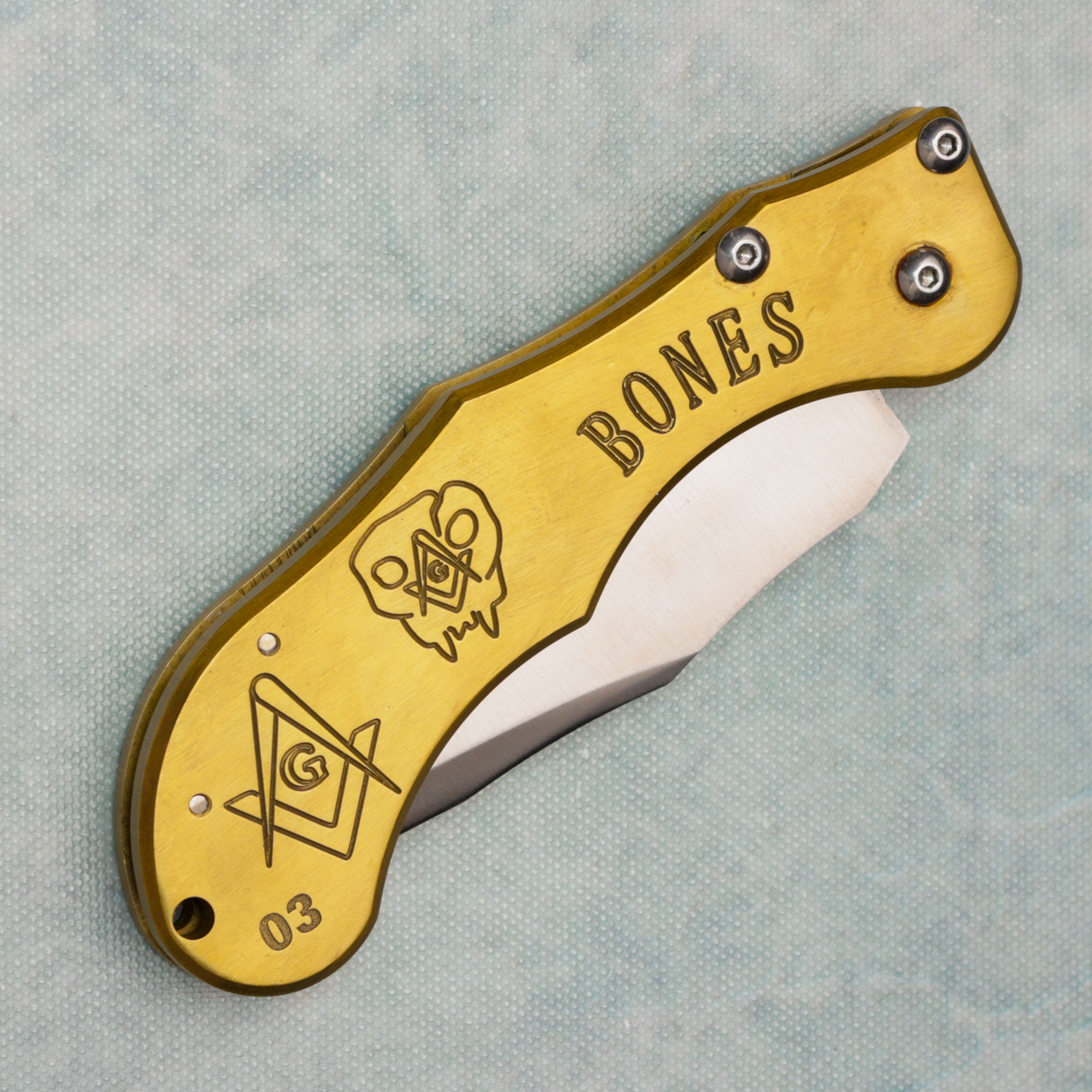 Dalton Side Opener Auto Brass Skull Handle Satin Blade