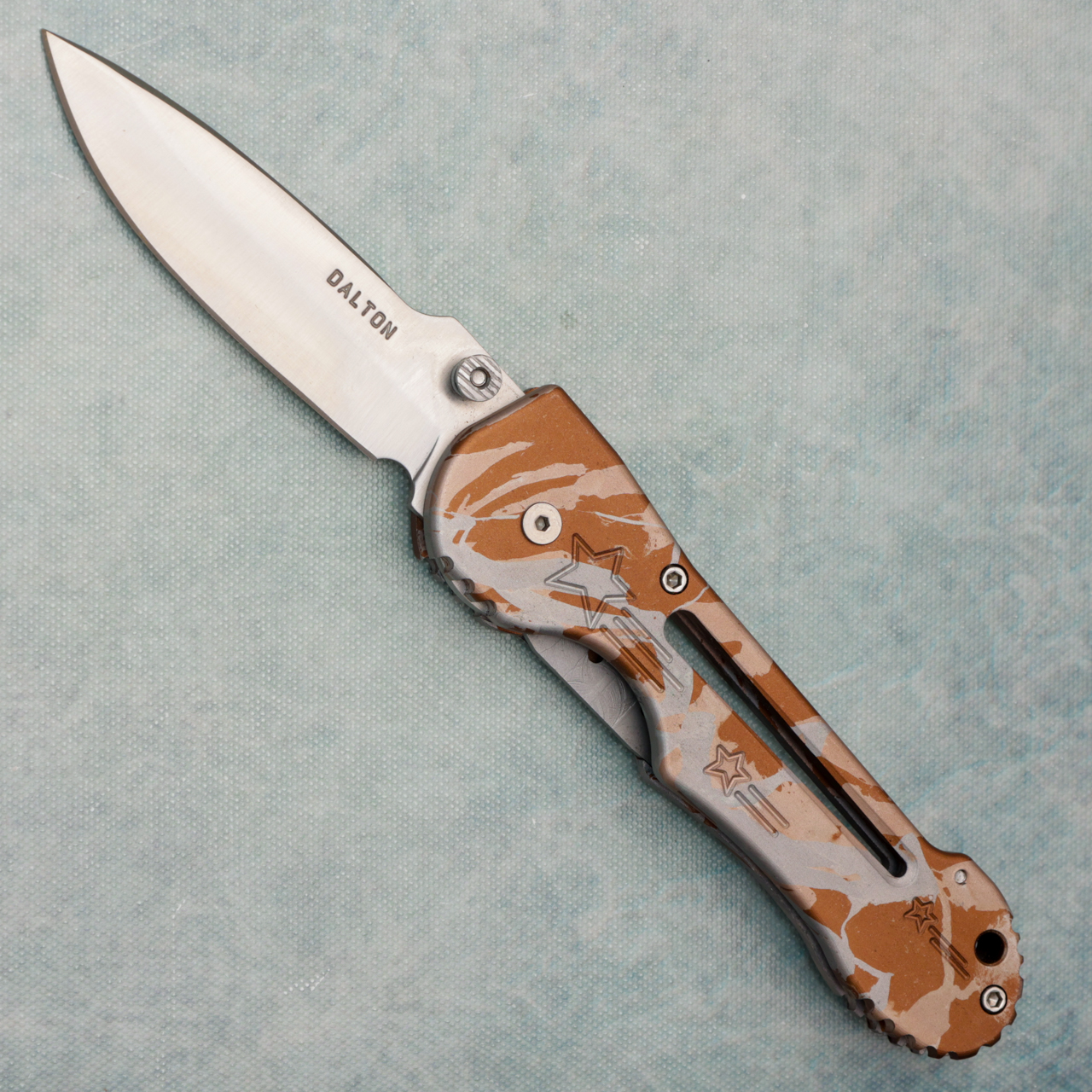 Dalton Thumb Stud Opener Auto Camo Stars Handle Bead Blast Blade