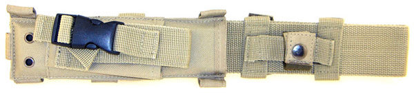 The Shadow features a corrosion resistant finish designed to take the saltwater immersion often involved in SEAL operations. The handle is made of a low-durometer, high tensile aramid composite that is impervious to everything from aviation fuel to Al Qaeda body fluids. The handle is thinner and wider for greater mechanical advantage with deep finger grooves orienting the blade axis of the knife in the hand and dramatically increasing effective grip surface. A prominent WhipLok finger notch provides an axis point for hacking as well as 200 degrees of grip area, ideal with wet hands or when using gloves. The handles are field replaceable to blend with woodland, desert or black camo schemes. Quartz impregnated inserts provide extreme circumstances grip enhancement and are replaceable should decontamination be required. The Basal Shadow utilizes the same CTV2 Blade Steel and Cryo Hardening techniques as the StratoFighter Folders! The hilts do not protrude forward effectively reducing the length of the blade. Hollow grinding lends to greater cutting and slashing effectiveness. Deep blood grooves keep the weight of the full .250 inch thick blade properly balanced in the hand. The desert camo Titanium CarboNitride (TiCN) vacuum deposited finish is designed to shed the micro-fine airborne sand of Middle-Eastern deserts.