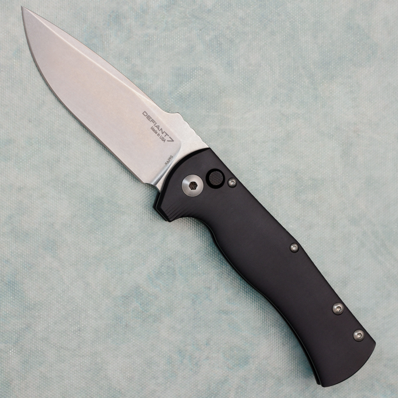 First off it doesn't have the opening power of a Pro-Tech however it's still fast enough and extremely smooth. Blade finish and overall fit/finish is excellent. Lockup is tight with no button stick. I think it's a great size, with solid egos and I believe it's American made as a bonus. I'm very happy I was able to get my hands on one and recommend it to anyone who likes autos. If it will be a user I would suggest some grip tape... as with most aluminum frames finished this way, they can be slippery. AE is a great dealer with a good rewards program and fast shipping.