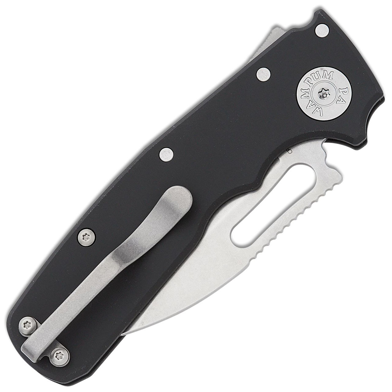 This model features black aluminum handle scales and a stonewash finished CPM-20CV stainless steel slicer style blade. Brand new in tube.
