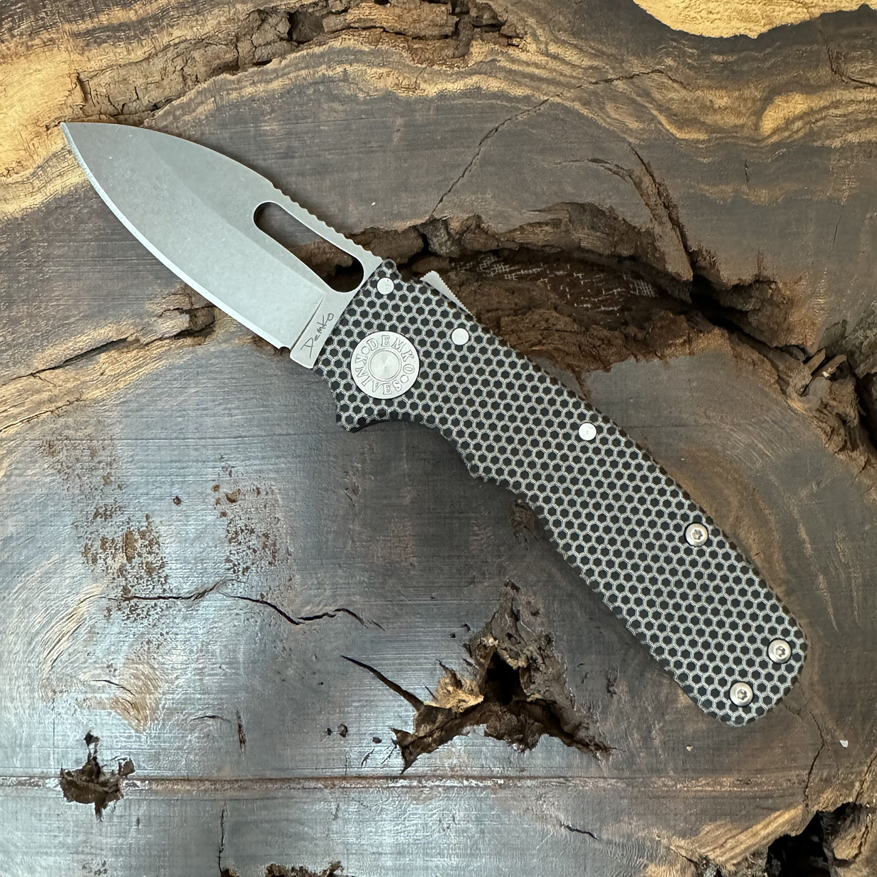 Demko AD-20.5 Shark Cub Shark Lock Hex Pattern Black Aluminum Handle Stonewash Slicer CPM-20CV Blade NCKS2023