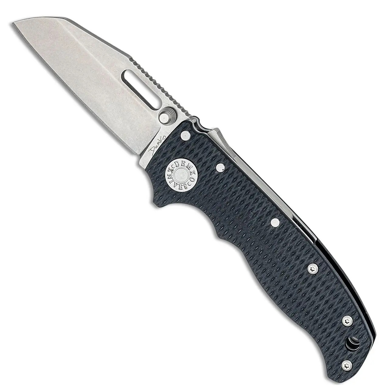 This model features black g10 handle scales. Stonewash finished CPM-S35VN stainless steel shark foot style blade. Satin finished hardware and a stonewashed pocket clip. Brand new in box with spare pocket clip.
