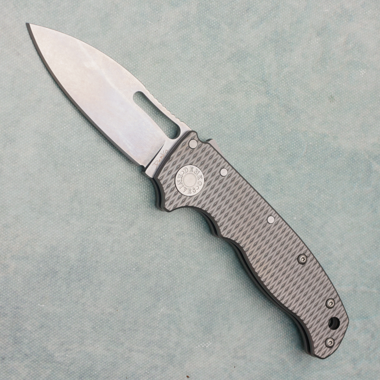 Demko AD-20.5 Shark Lock Slicer Textured Titanium Handle Stonewash 3V Blade