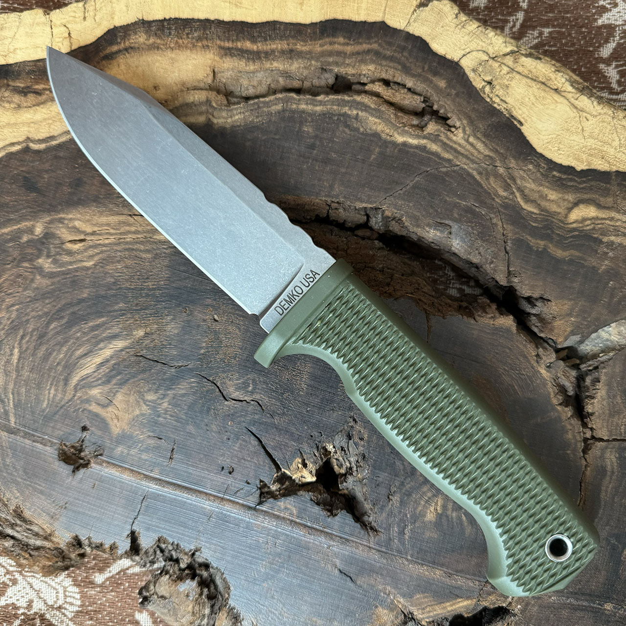Demko FreeReign Fixed Blade OD Green Handle Stonewashed MagnaCut Blade