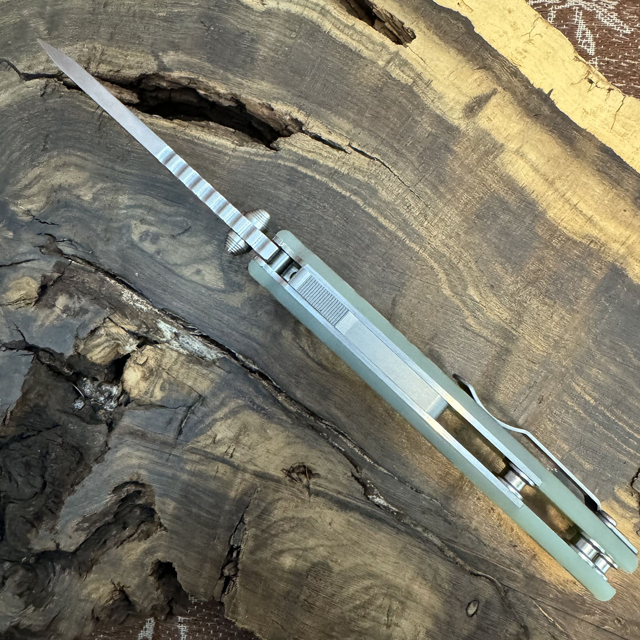 The MG AD20i is a crazy popular model in the Demko Knives line. This is an American made top quality folder that comes in at a fair price. The only difference between the i and the regular MG AD 20 is the lock bar is internationally sourced. Thanks to the Shark Lock it's super fidgety! The additional jimping on the spine and a high grip option also contribute to the knife’s usability.