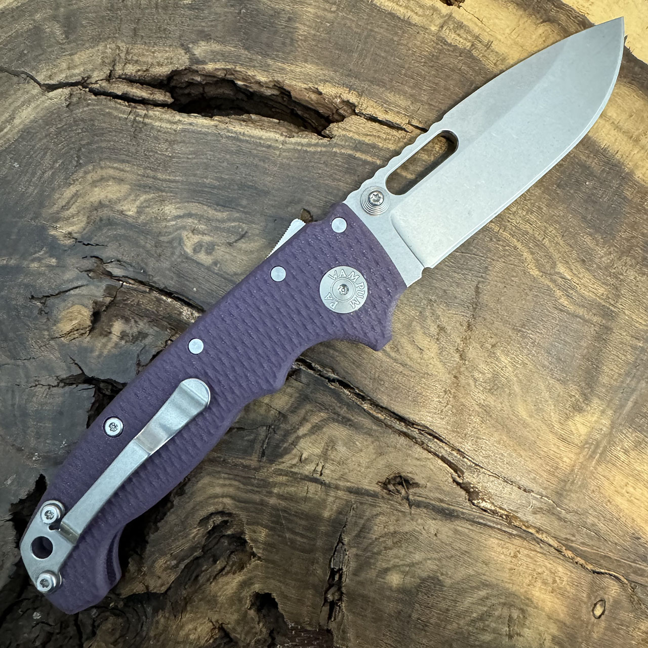 Demko MG AD20i Shark Lock Textured Purple G10 Handle Stonewash Clip Point 20CV Blade