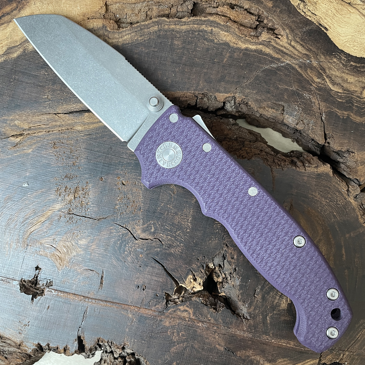 Demko MG AD20S Shark Lock Purple G10 Handle Stonewash Shark Foot S45VN Blade