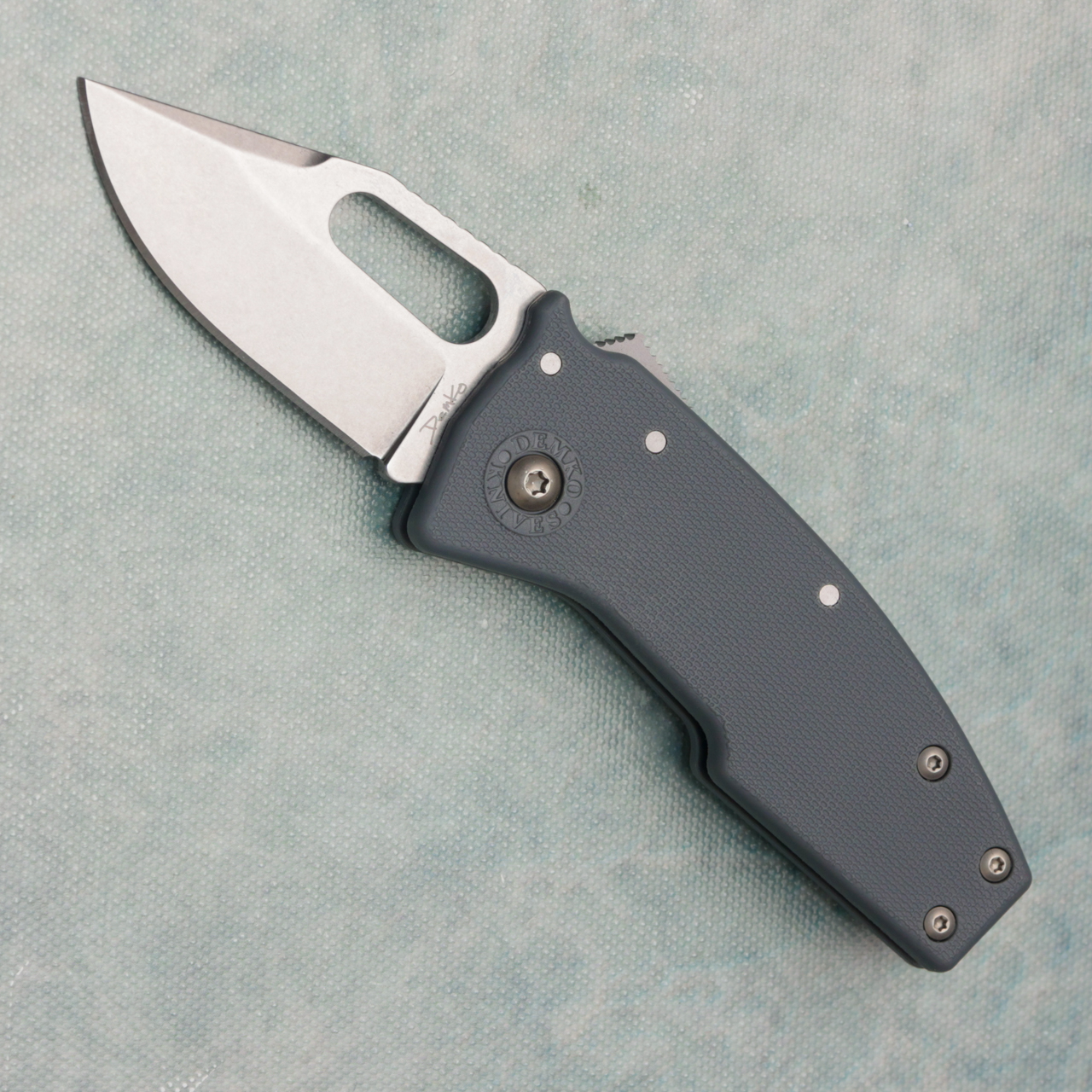 Demko Nano-Shark Shark Lock Gray GRN Handle Stonewash Clip Point AUS10A Blade