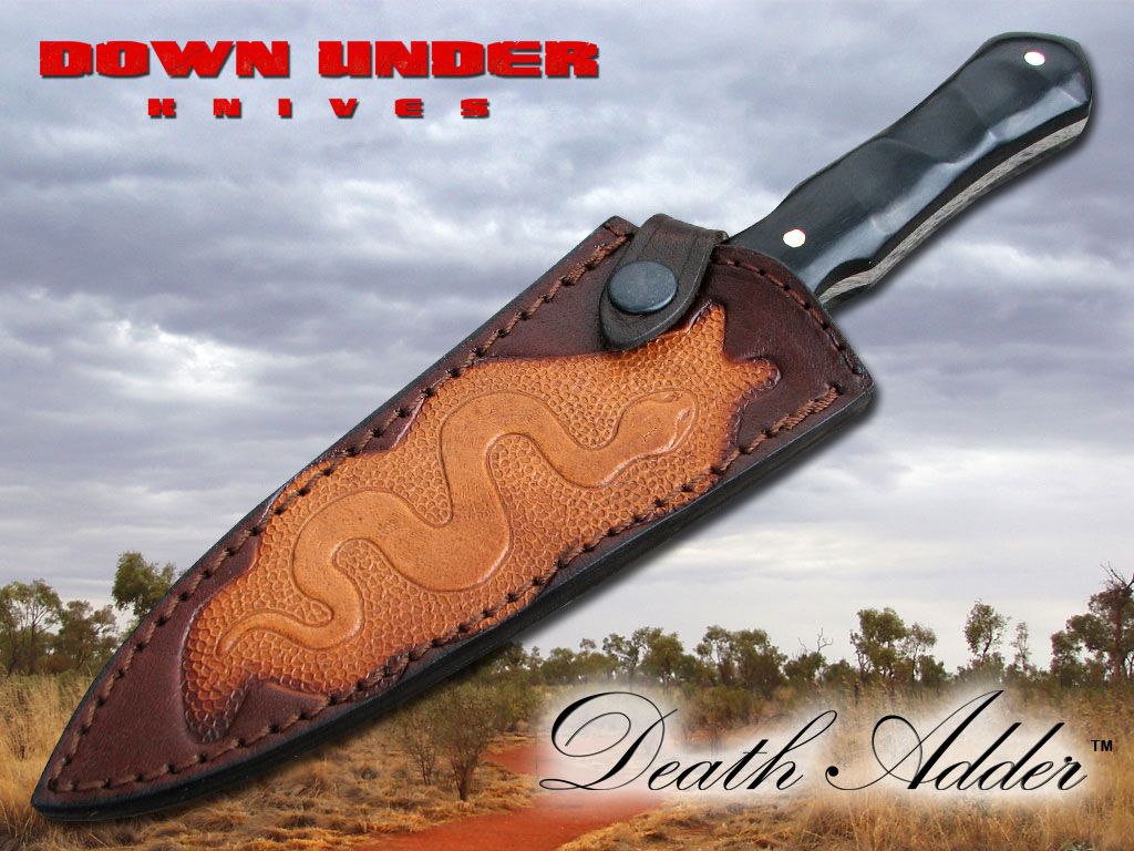 Down Under Knives Death Adder Dagger Ebony Wood Handle Mirror Polish Blade