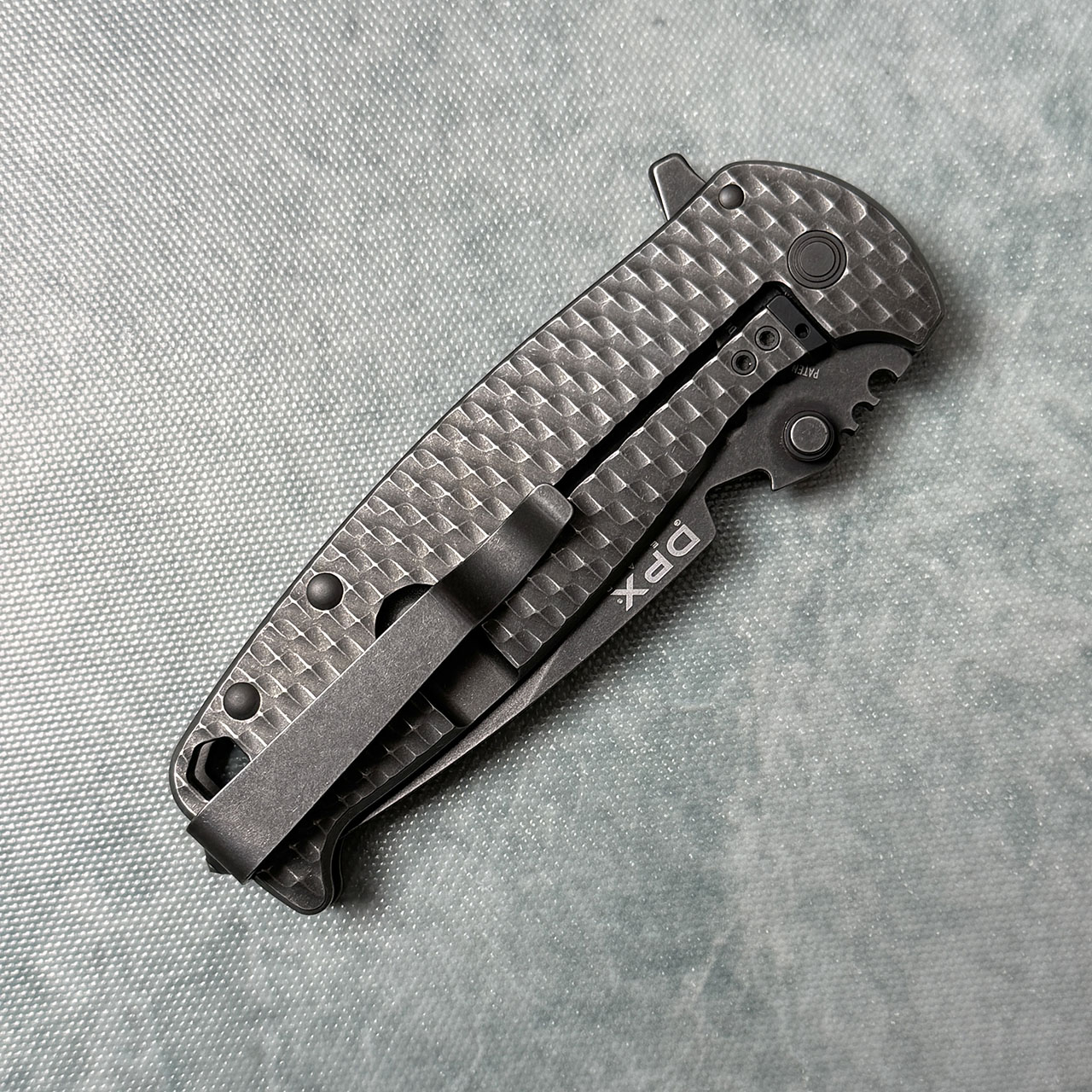 The HEST from DPx Gear has a blackwashed M390 stainless steel blade, offering nearly unparalleled performance when it comes to edge retention and corrosion resistance. The titanium handle features a unique 3D diamond pattern that's as beautiful as it is comfortable in your hand, excellent pre-owned condition in box.