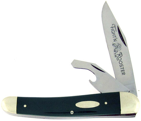 Smooth green delrin handle scales. Satin finished stainless steel clip point blade etched FIGHT'N ROOSTER TM with logo and cap lifter screwdriver blade. Both blades have good strong snap. Brass liners. Nickel silver bolsters, handle pins, and inlaid oval shield. Great german made pocket knife that is sure to please any knife lover. New condition.