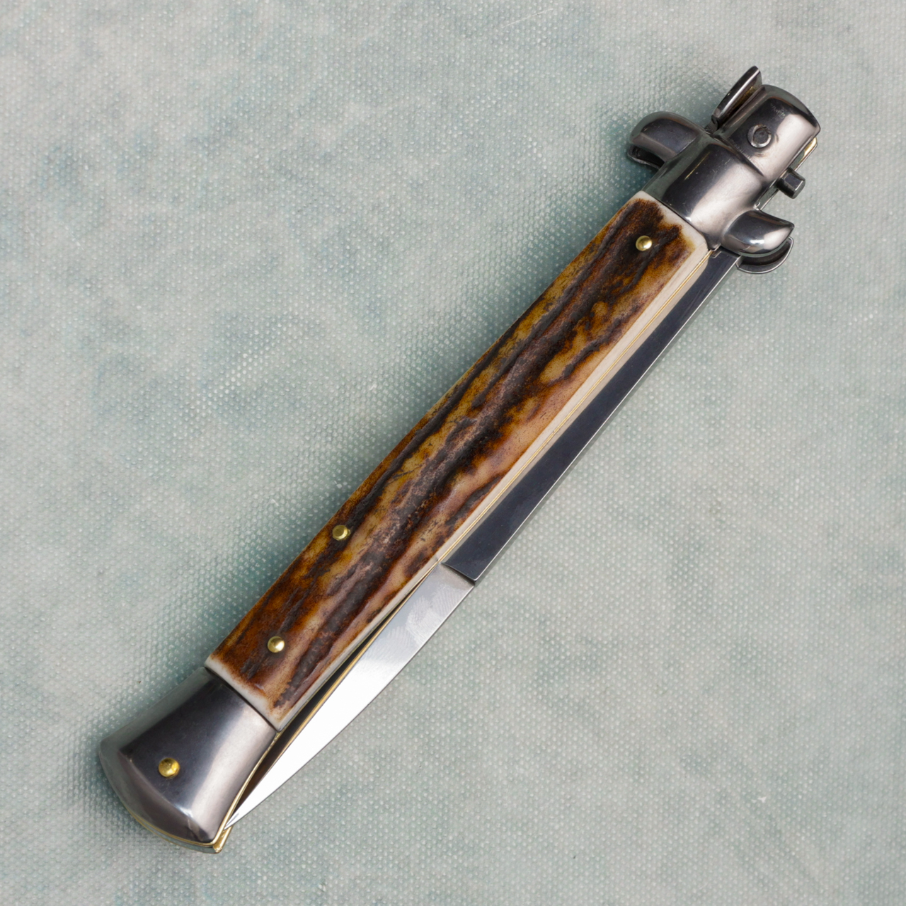 Frank Beltrame 11" Italian Stiletto Auto Stag Handles Polished Bayonet Blade