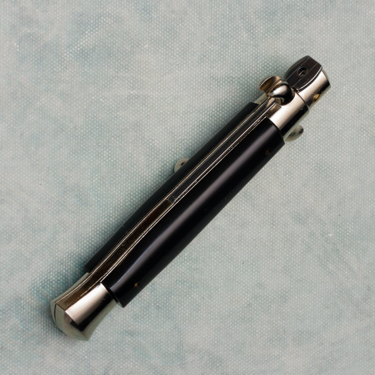 Frank Beltrame 9" Italian Stiletto Auto Black Handles Polished Bayonet Blade