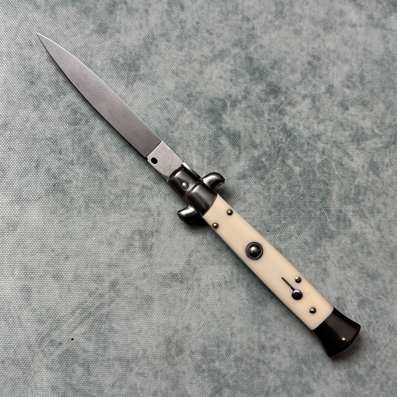 Frank Beltrame 9" Italian Stiletto Auto Imitation Ivory Handles Polished Flat Dagger Blade