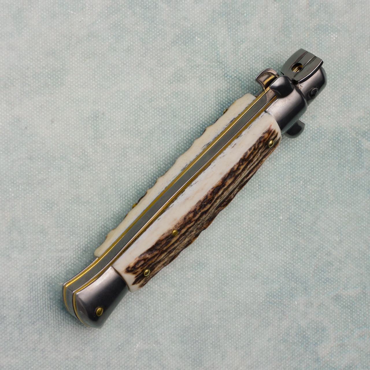 Frank Beltrame 11" Italian Stiletto Auto Stag Handles Polished Bayonet Blade