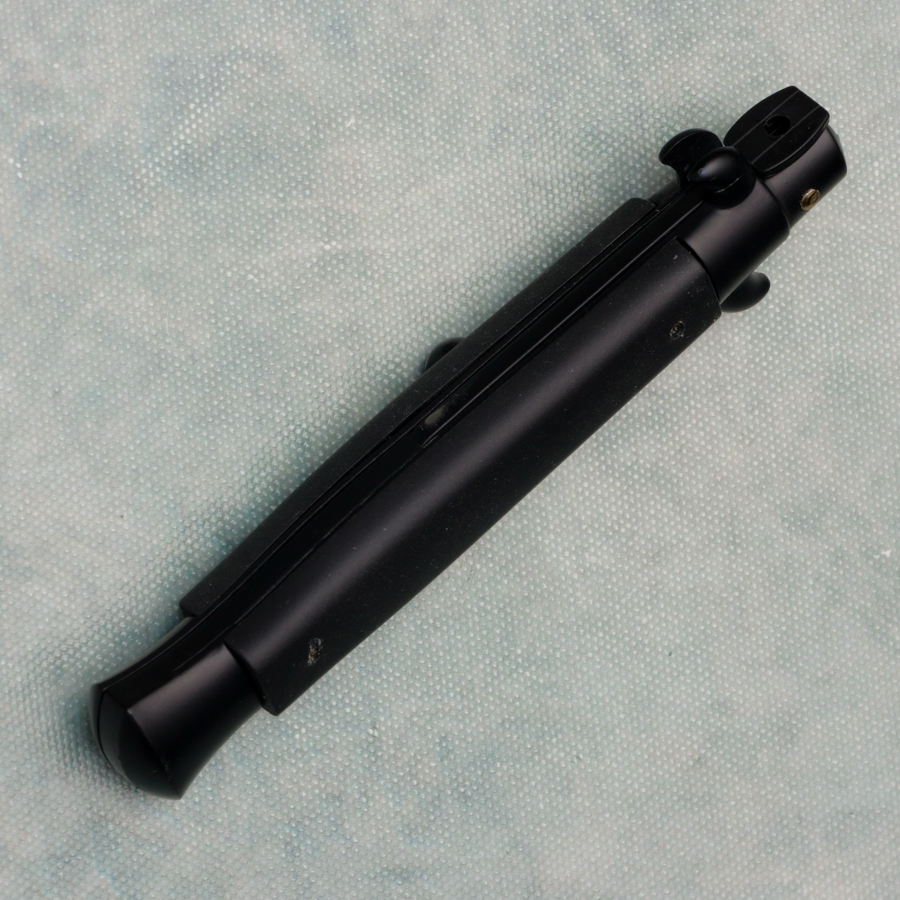 Frank Beltrame 9" Italian Stiletto Auto Teflon Coated Black Handles Black Flat Blade