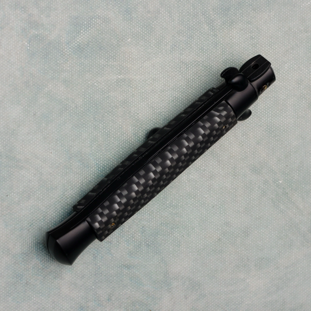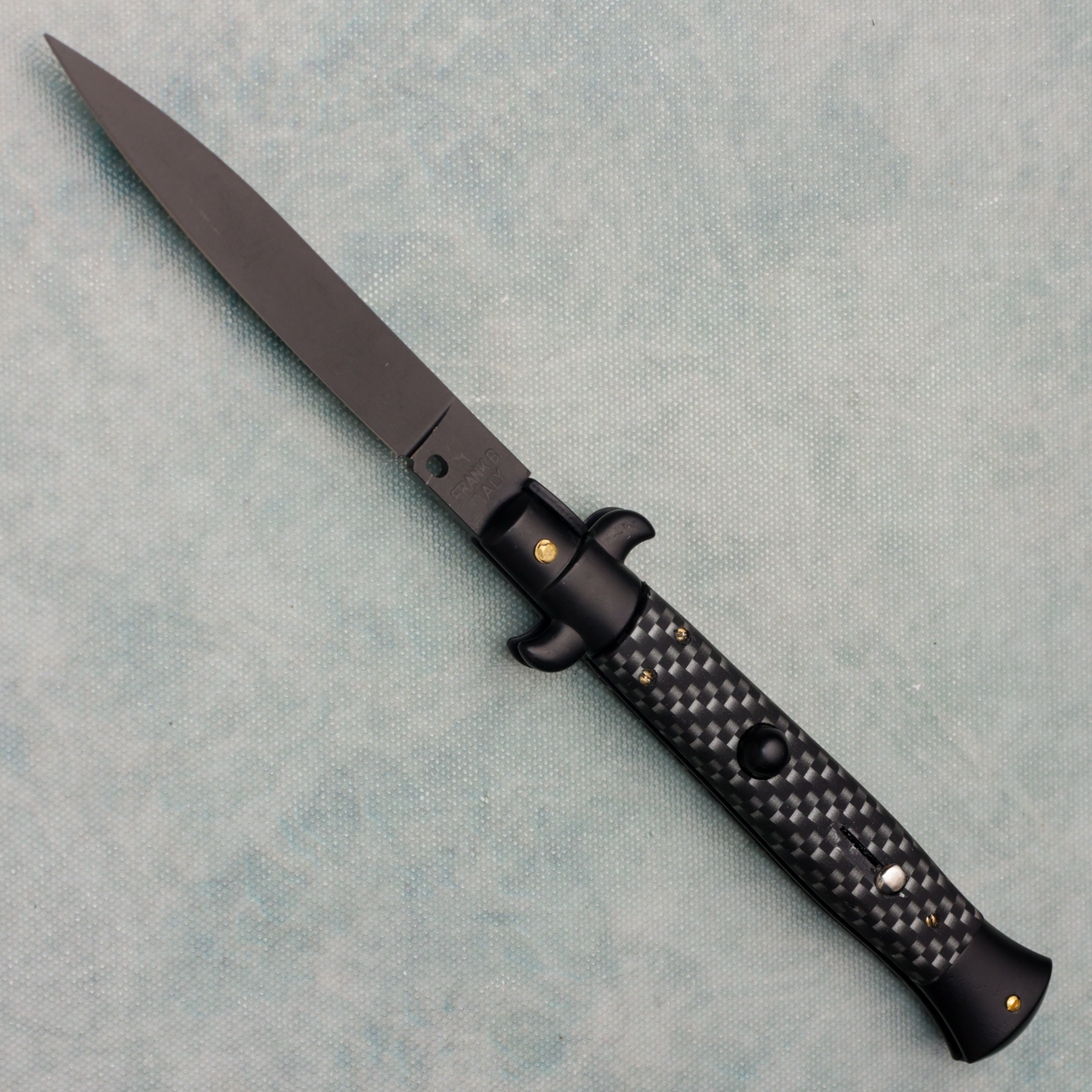 Frank Beltrame 9" Italian Stiletto Auto Teflon Coated Sim Carbon Fiber Handles Black Flat Blade