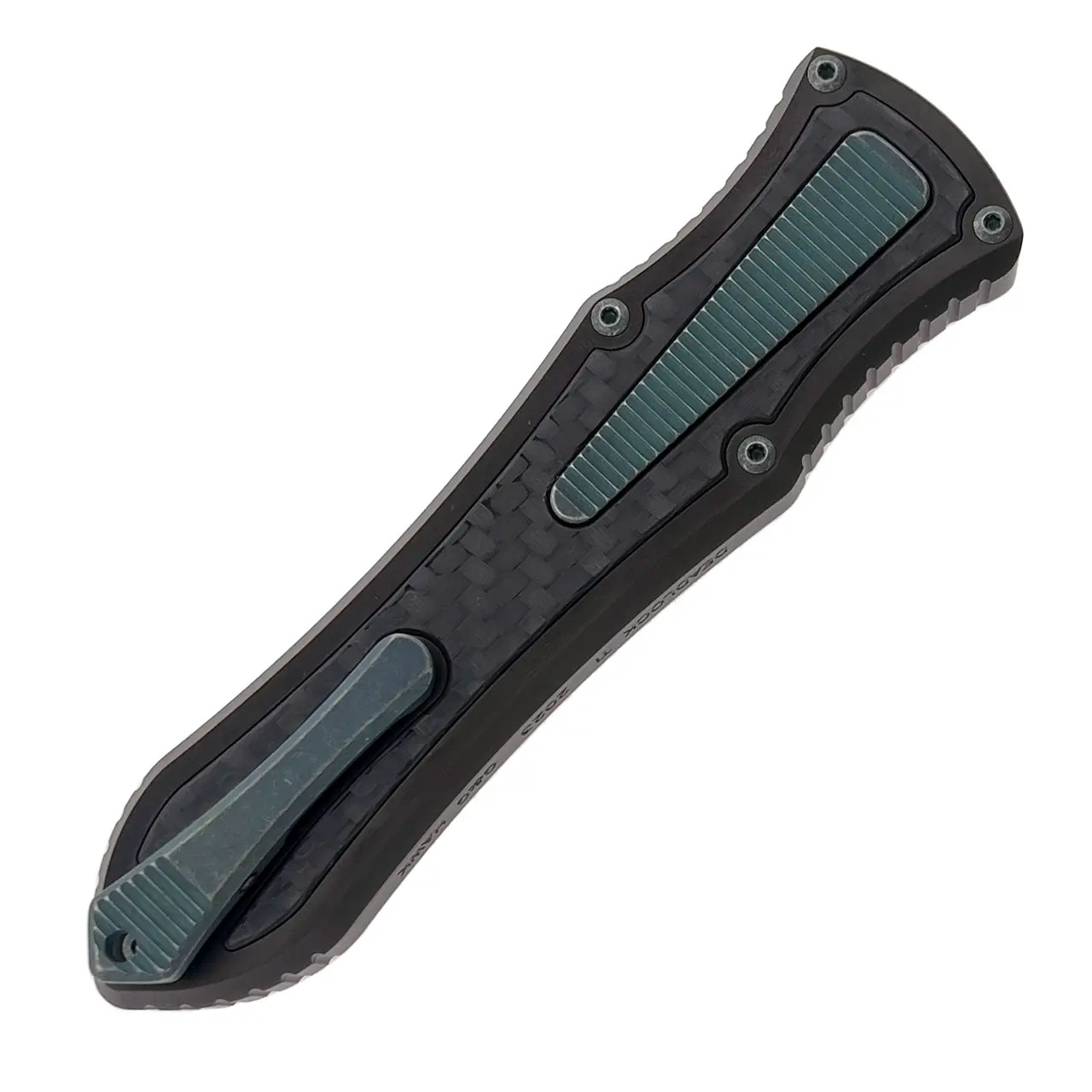 G&G Hawk Custom Deadlock Model C OTF D/E DLC Titanium Handle w/ Carbon Fiber Inlays DLC Blade Distressed Green Ti Hardware
