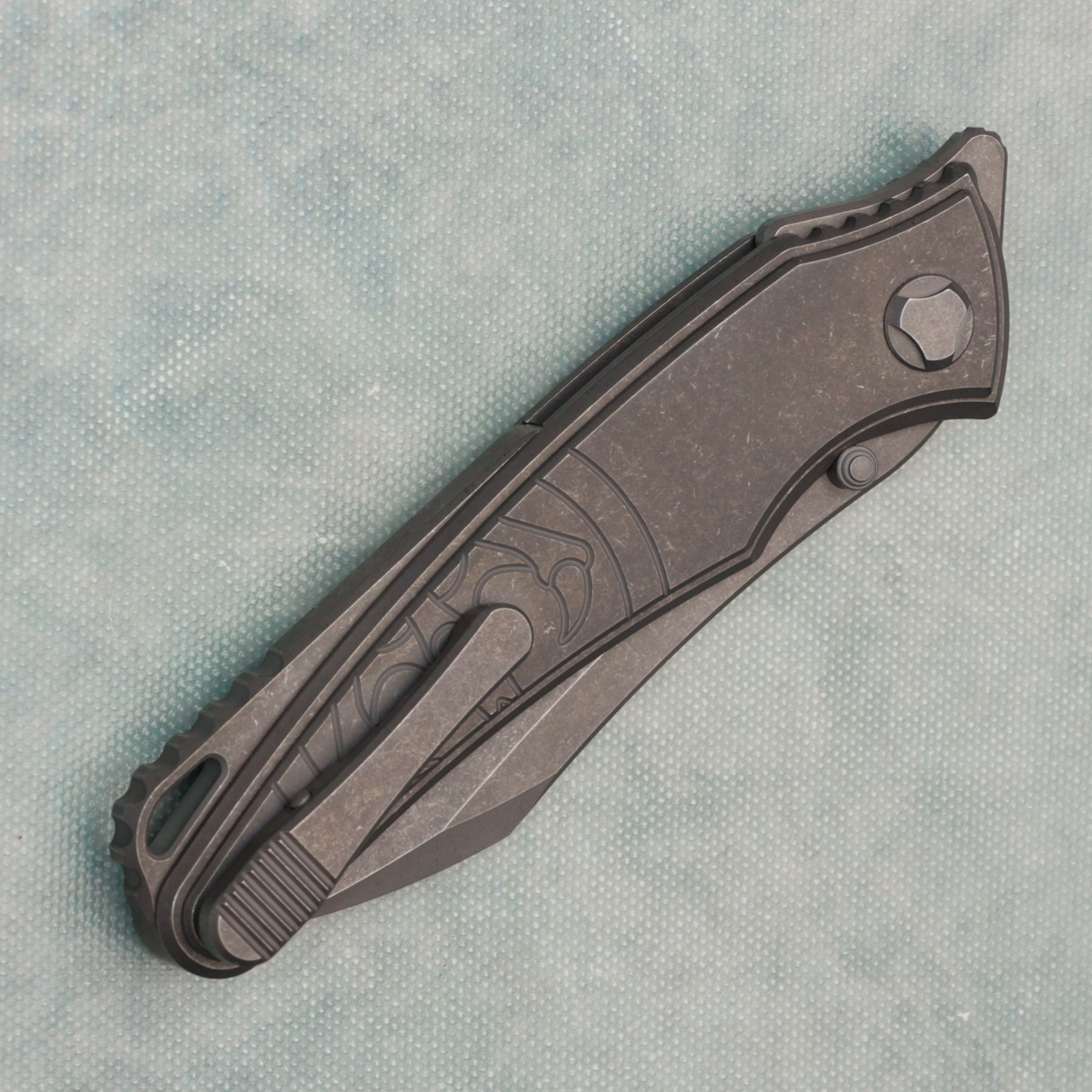 G&G Hawk Talon Hawk Lock w/Toggle Detent Titanium Handle w/ Titanium Inlays Stonewash Blade