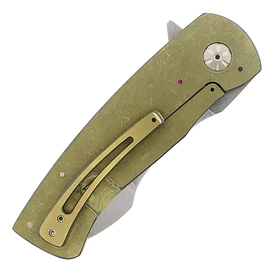 George Muller Custom Frame Lock IKBS Flipper Gold Titanium Handle Stonewash Blade
