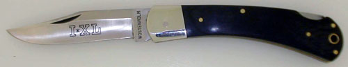 The blades of these I*XL knives were made and put into storage in the 1980's by Parker Cutlery. The late Jim Parker licensed the I*XL name and decided to reproduce the most popular patterns in Japan. Subsequently, Parker Cutlery filed for bankruptcy and the blades have been in storage since then. They were recently found and are now available for purchase. Stainless clip blade has Logo etch with WOSTENHOLM tang stamp. Nickel silver bolsters. Laminated wood handles secured with 5 brass pins on each side. Brass liners and brass lined lanyard hole. Great Knives Great Value.